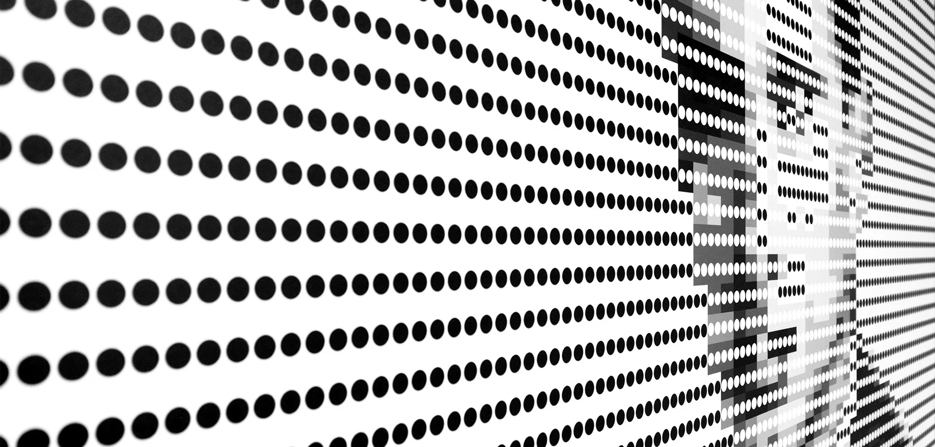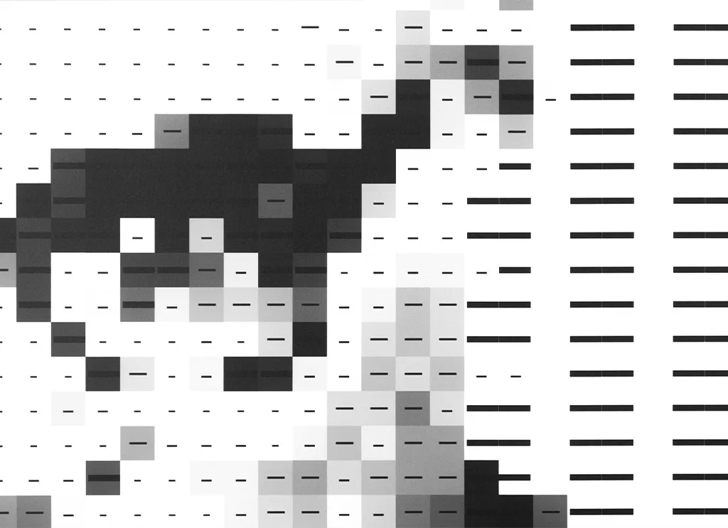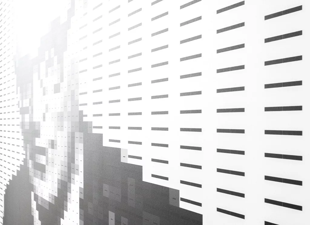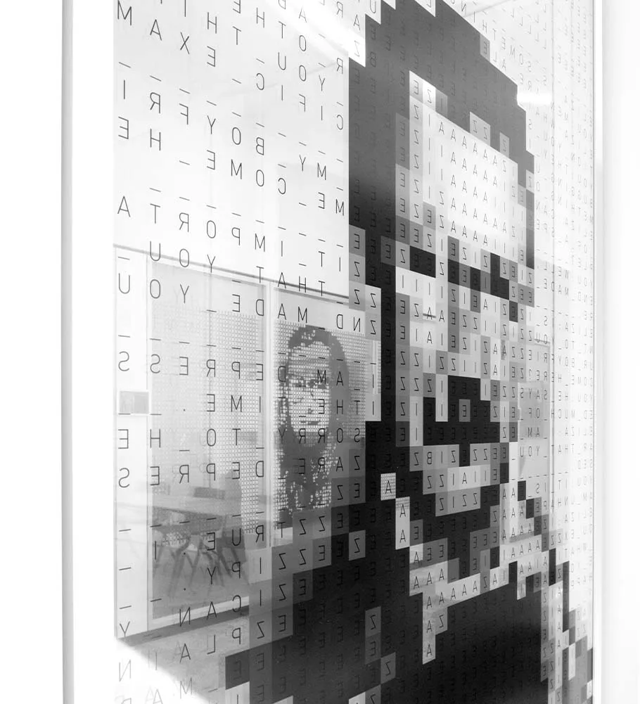 Raymond Kurzweil – Sein Beitrag zur Mustererkennung und künstlichen Intelligenz wurde durch ein RGB-Farbraum-Porträt umgesetzt, das von 255 (Weiß) bis 0 (Schwarz) reicht und die Prinzipien seiner »Reading Machine« reflektiert.